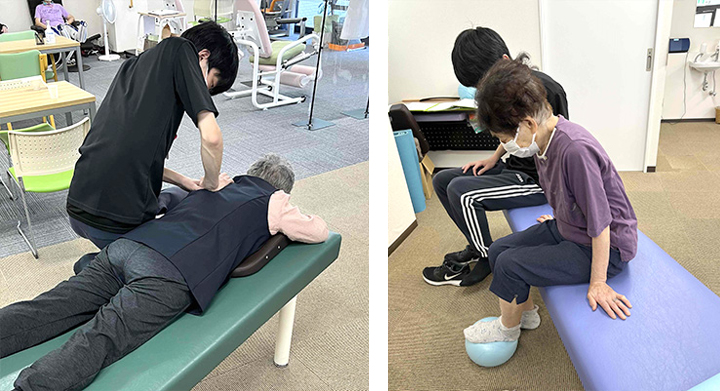 理学療法士によるそれぞれの方に合わせた体のストレッチ、トレーニング、ケア、動作訓練などを個別に行います。